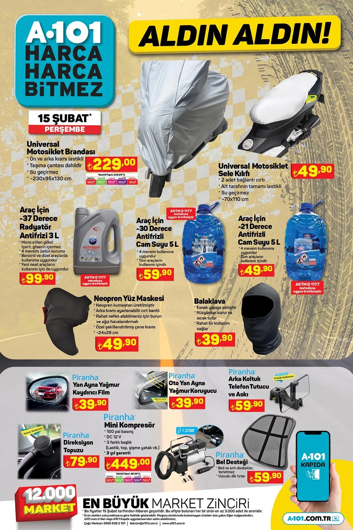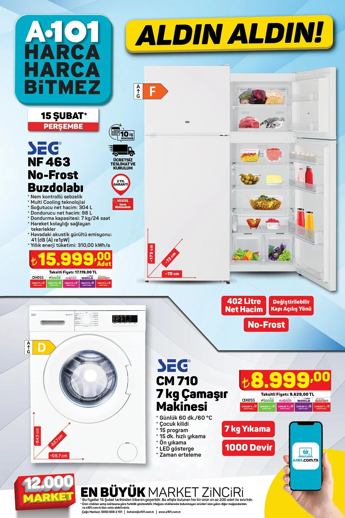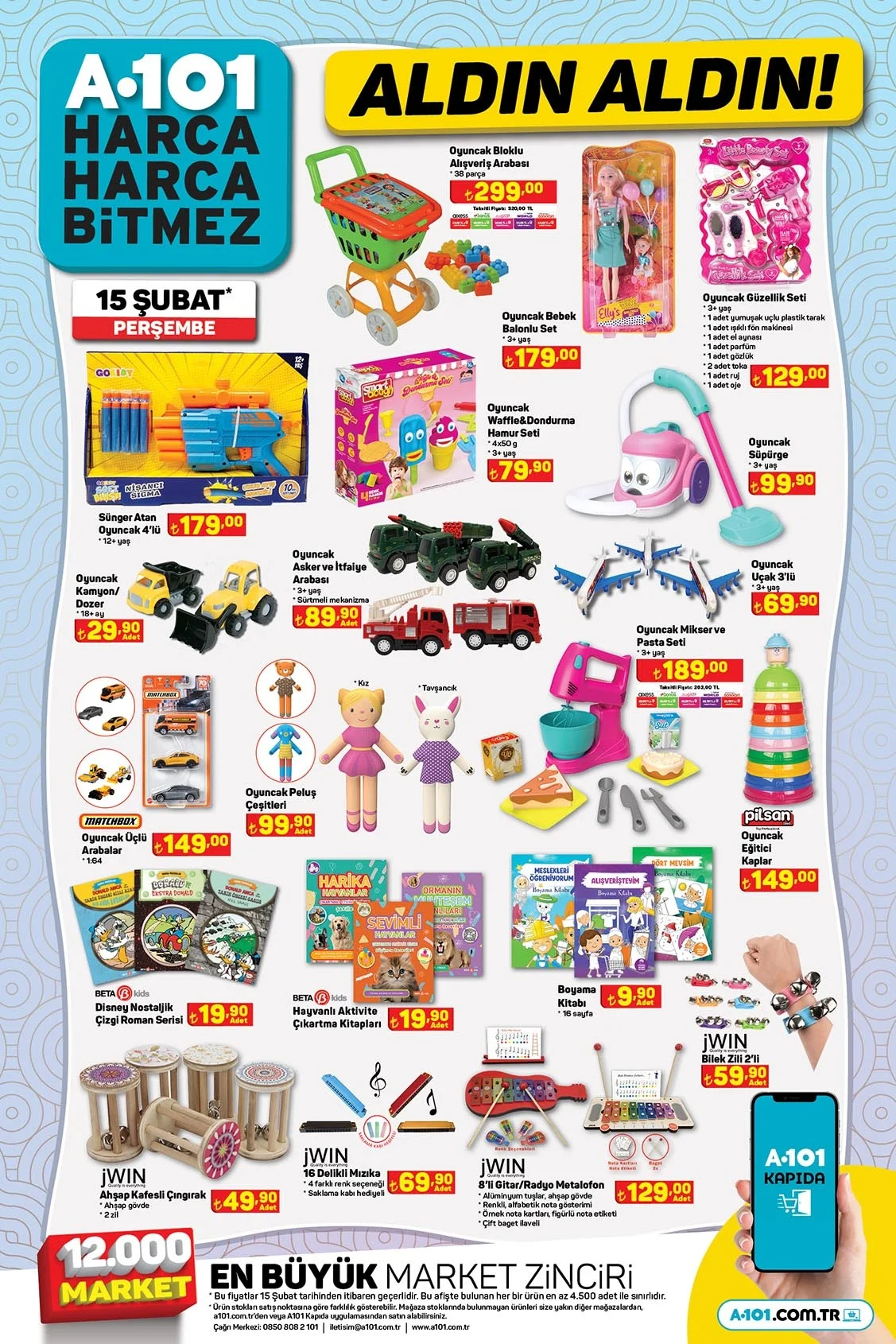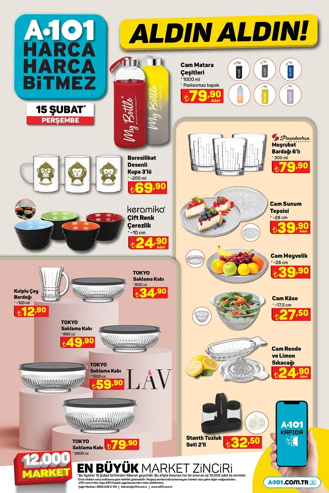 A101 aktüel ürünler kataloğu milyonlarca kişi tarafından takip ediliyor. . 15 Şubat 2024 Perşembe gününden itibaren A101 marketlerde hangi ürünlerin geleceği araştırılamaya başlandı. Bu hafta A101'de A101'de Toshiba 65" Ultra HD Android Tv 23.999 TL ve SEG No-Frost Buzdolabı 15.999 TL'den satılıyor. Peki bu hafta A101'de neler var? 15-22 Şubat A101 aktüel ürünler kataloğu...