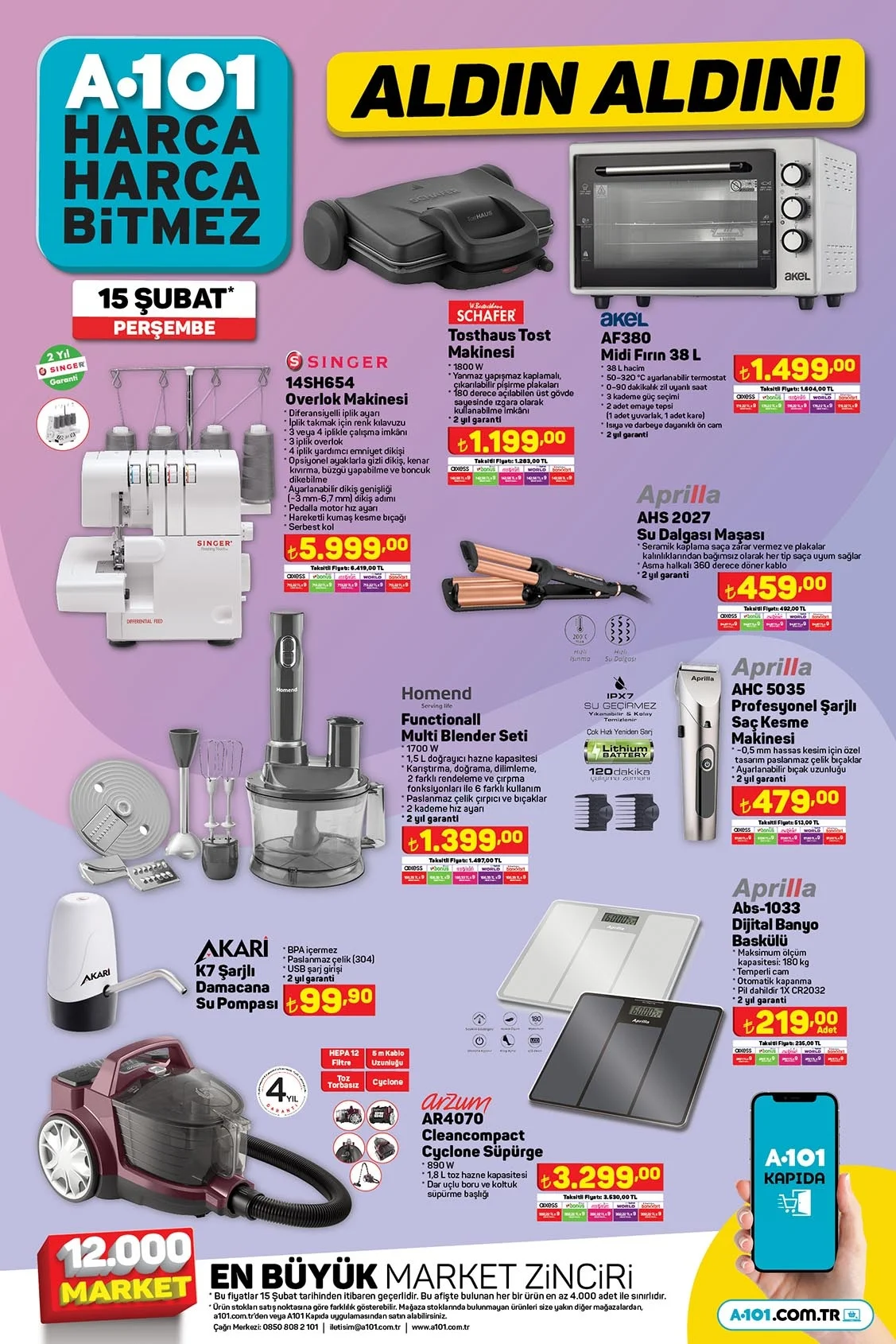 A101 15-22 Şubat 2024 aktüel ürünler kampanya kataloğu belli oldu. A101'de bu hafta 15 Şubat ile 22 Şubat 2024 tarihleri arasında geçerli olacak indirimli ürünler açıklandı. İşte 15-22 Şubat 2024 A101 aktüel ürünler kataloğu!