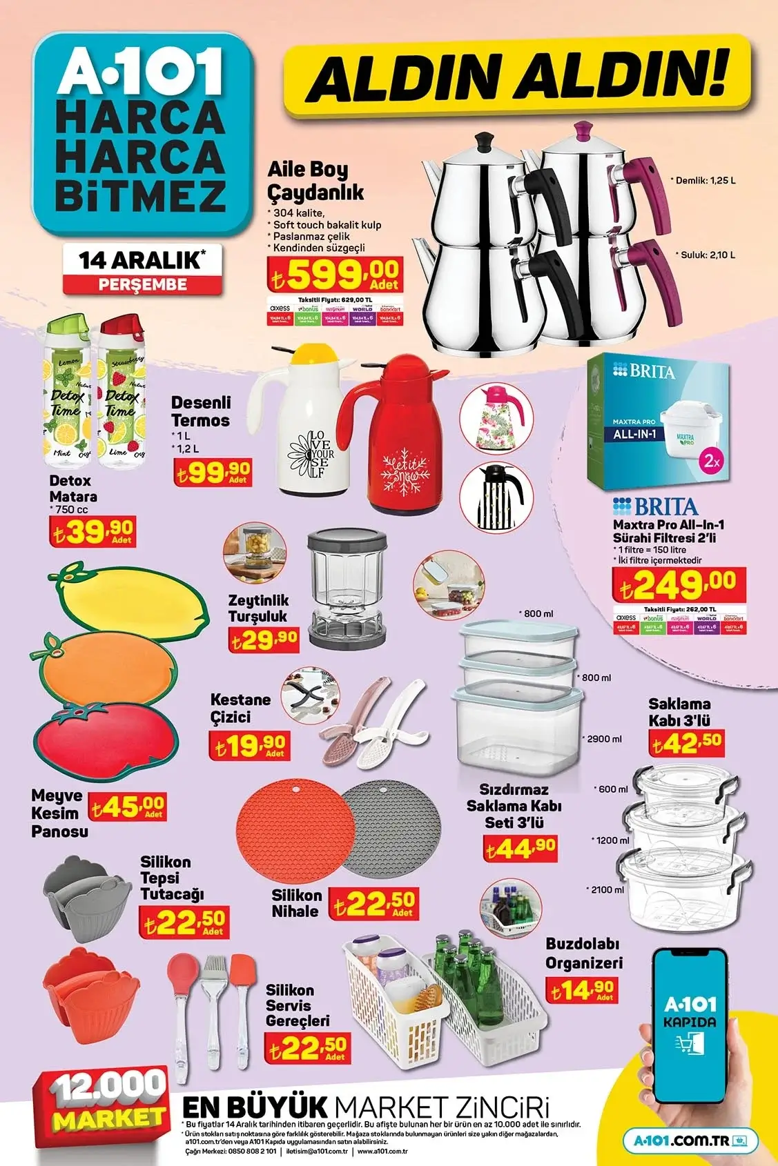 A101'in 14 Aralık 2023 tarihli aktüel ürünler kataloğunu yayımlandı. İşte A101 14 Aralık 2023 aktüel ürünler kataloğu fiyat listesi...