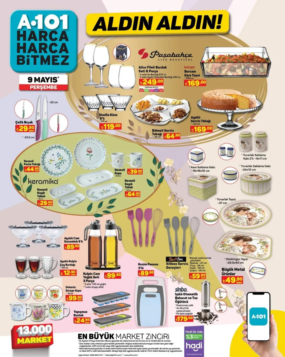A101 9 Mayıs 2024 aktüel ürünler kataloğunu paylaştı! Yarın A101 markete beyaz eşyadan, televizyona, airfryerdan, hamur yoğurma makinesine kadar seçili ürünlerde indirimler raflarda yerlerini alıyor.