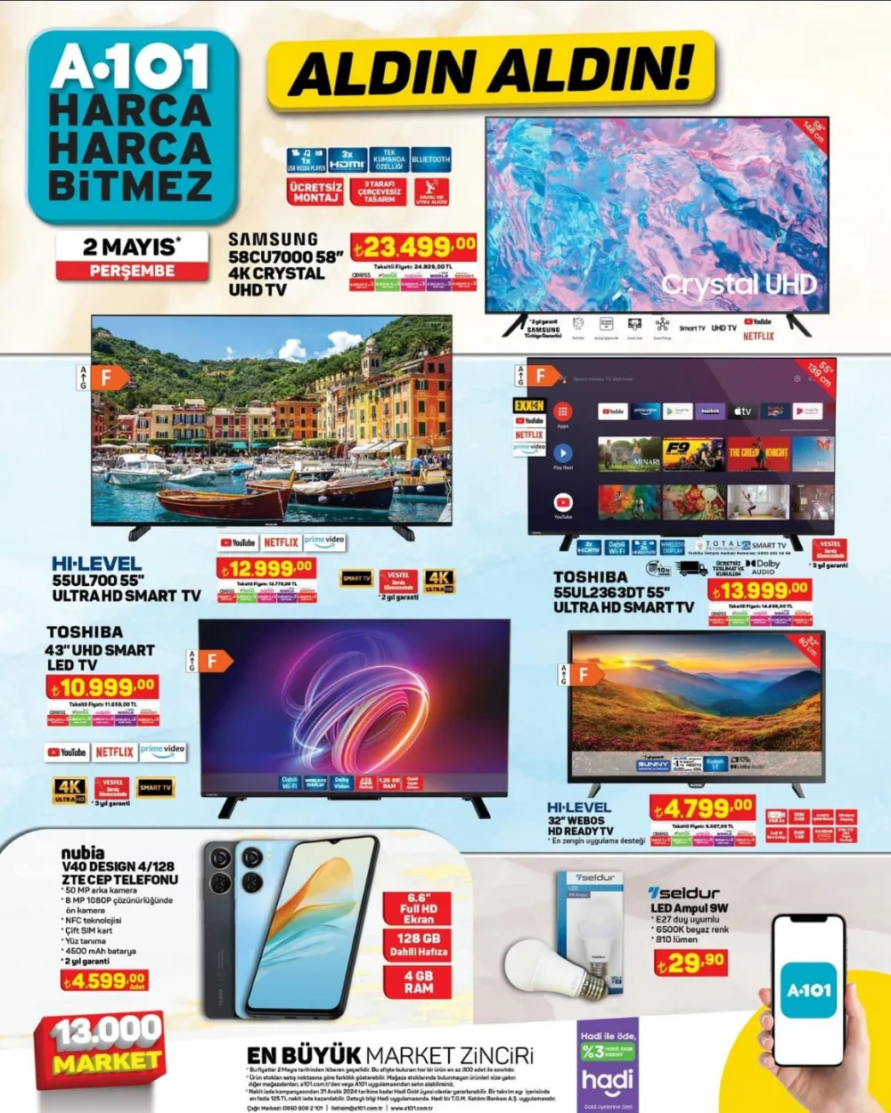 A101'de yarın indirim fırsatı sizleri bekliyor! A101'de yarın TV'den yatağa, çadırdan karavana seçili ürünlerde kampanya