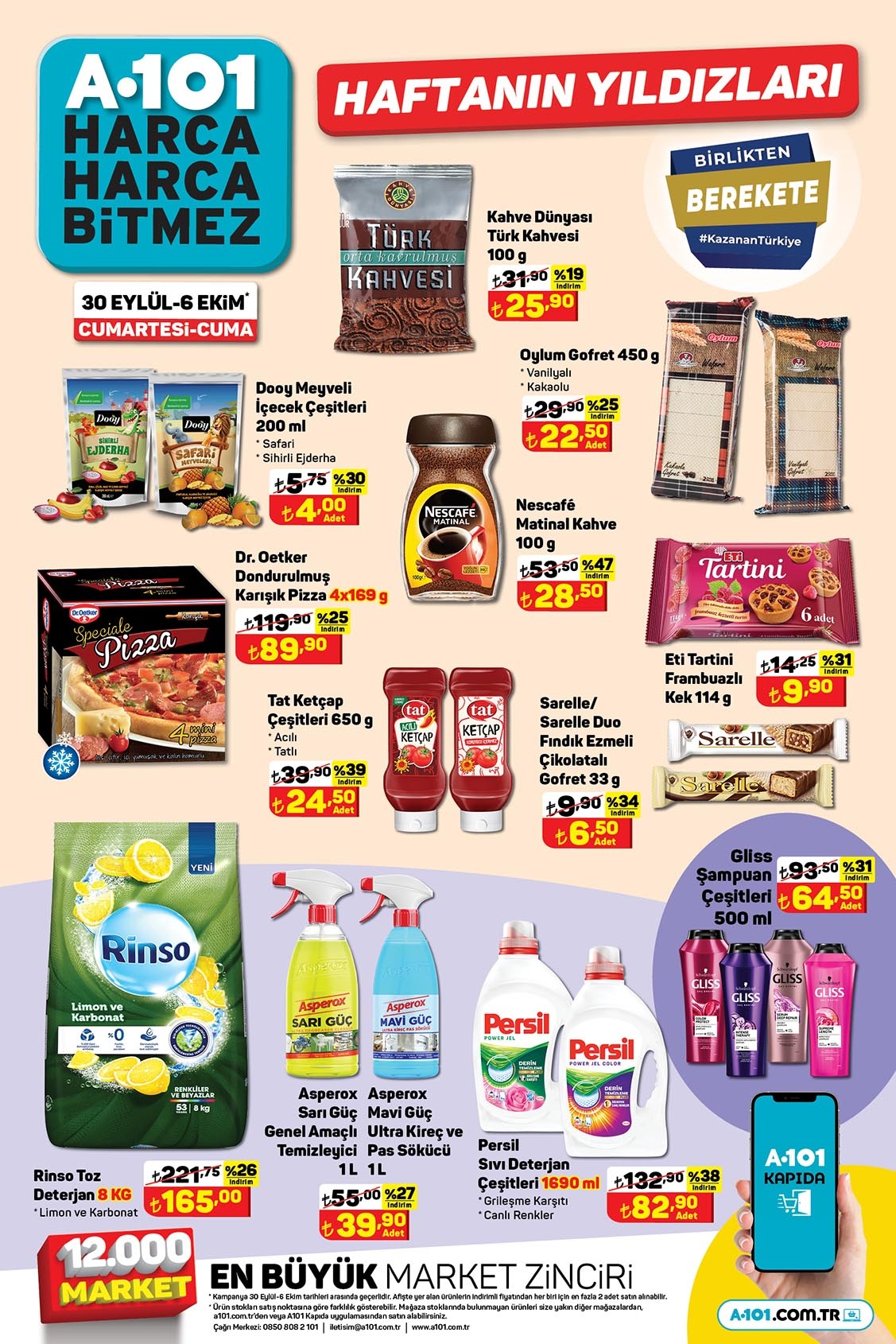 A101'in indirimli aktüel ürünler kataloğu yayımlandı. Haftanın Yıldızları başlığı altında indirime çıkarılan aktüel ürünler arasında; Rinso Toz Deterjan, Ovadan Osmancık Pirinç ve Persil Sıvı Deterjan Çeşitleri, Orkide Omega 3 Bitkisel Karışım Sıvı Yağ ürünleri dikkat çekti. Öte yandan A101'de 10 TL üstü alışverişlerde 1,5 litre Fairy Platinum Sıvı Bulaşık Deterjanı 128,90 lira yerine 69,90 liraya, 875 gram Torku Banada Miniki Kakaolu Fındık Kreması ise 129,90 lira yerine 69 liraya satışa çıkarılacak Peki, A101'deki diğer indirimli ürünlerin fiyatı ne kadar, kaç TL oldu? A101 indirimli aktüel ürünler neler? İşte A101 aktüel ürünler kataloğu fiyat listesi...