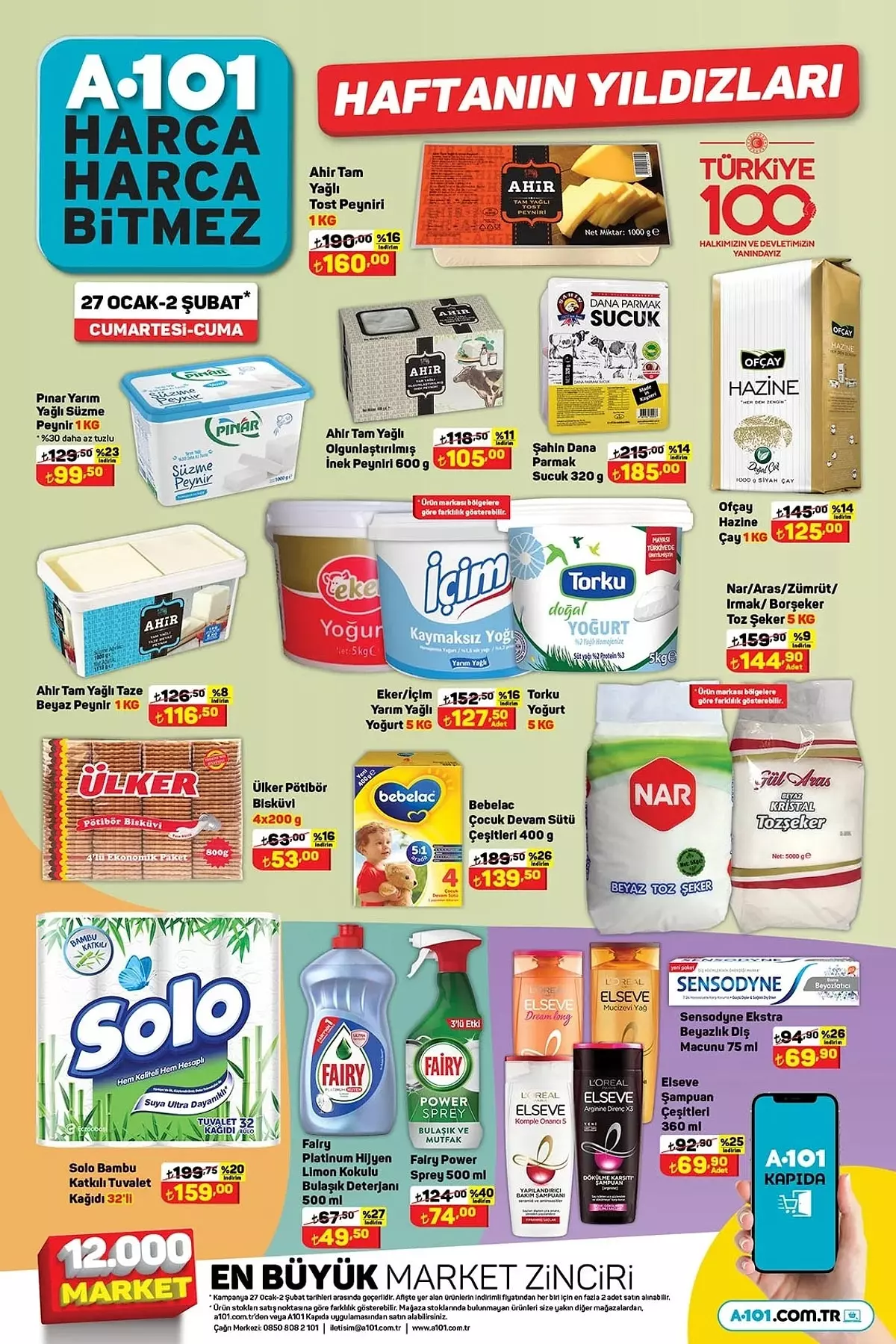 A101'de 2 Şubat'ta geçerli olacak indirim kampanyası ile müşterilerine cazip fırsatlar sunuyor. Pınar Yarım Yağlı Süzme Peynir 1 Kg 99,50 TL, Solo Bambu Katkılı Tuvalet Kağıdı 32'li 159 TL, 10 TL ve üzeri alışverişlerinizde ise birçok seçili üründe cazip fırsatlar sunuyor.