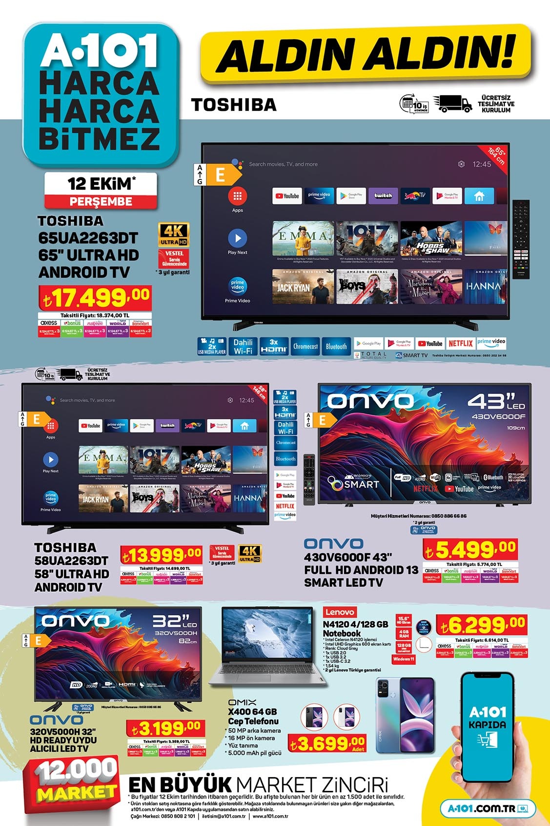- A101'DE Toshiba 65" Ultra HD Android Tv 17.499 TL