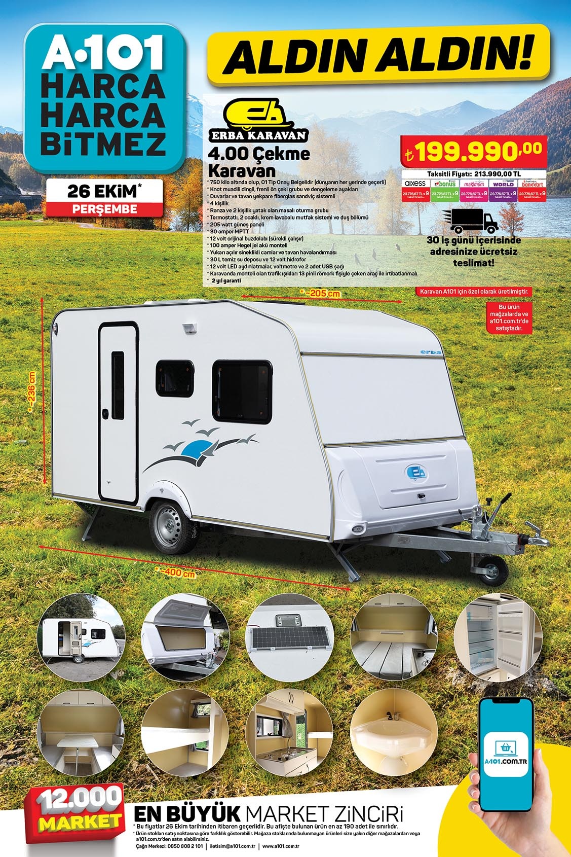 A101'e 4.00 Çekme karavan geliyor! A101 26 Ekim Perşembe online aktüel ürünler kataloğu fiyat listesi