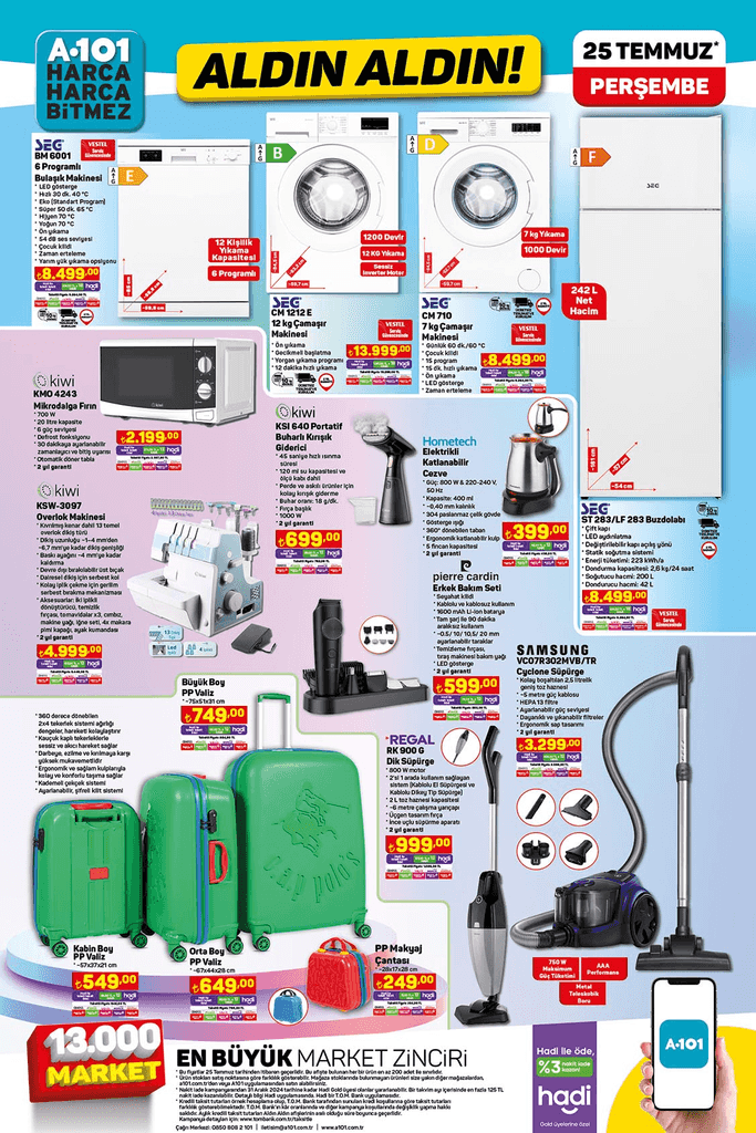 A101 İNDİRİMLİ ÜRÜN LİSTESİ 25 TEMMUZ 2024