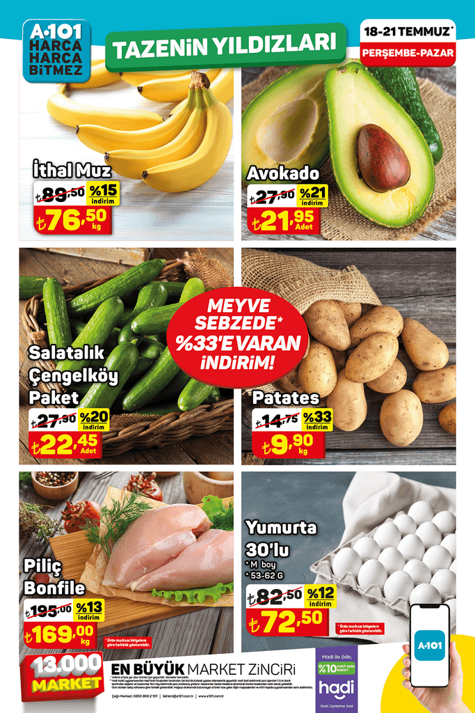Perakende devi A101, merakla beklenen yepyeni aktüel kataloğunu resmi web sitesi üzerinden yayımladı. A101'de bu hafta yoğurt ton balığı, yaz helvası, sıvı deterjan, tam yağlı beyaz peynirin dışında bir de meyve sebzede yüzde 33 indirim var.