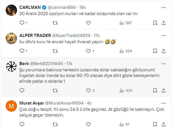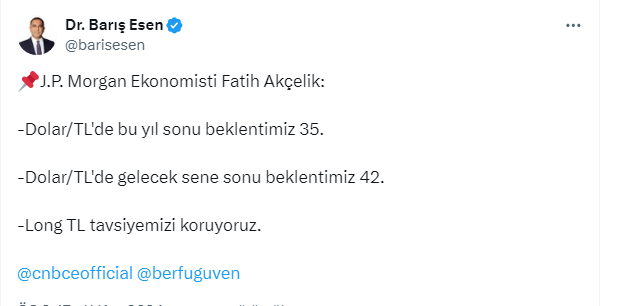 Fatih Akçelik’in dolar ile açıkladığı tahmini Gazeteci Barış Esen https://x.com/barisesen X sosyal medya hesabından yaptığı paylaşımla duyurdu. Vatandaşlardan tahminle ilgili yorumlar gecikmedi.
