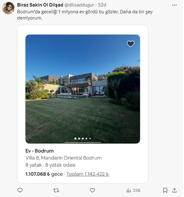 TBMM'de kabul edilen yeni düzenleme ile birlikte Airbnb gibi ev paylaşımı uygulamalarındaki kiralık evlerin ilanları milyonlar tarafından yakından takip ediliyor. Airbnb ile kiralık ev arayanların kadrajına giren bir ilan görenleri şaşkına çevirdi.