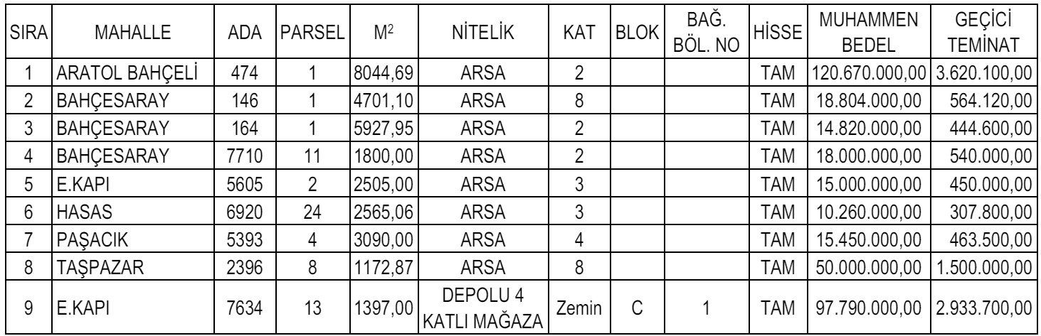 taşınmazlar yukarıda belirtilen yer, tarih ve saatte toplanacak Komisyon huzurunda 2886 sayılı