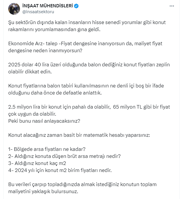 2025 dolar 40 lira üzeri olduğunda balon dediğiniz konut fiyatları zeplin olabilir dikkat edin.