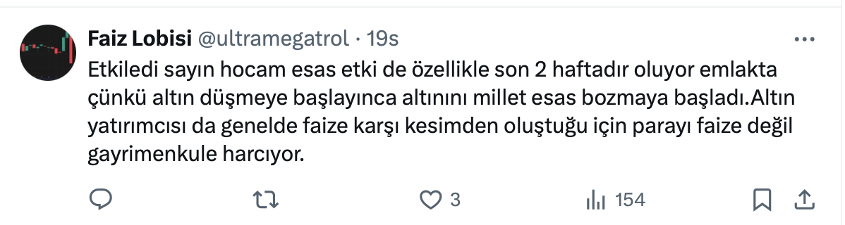 Şehir Plancısı ve Gayrimenkul Değerleme Uzmanı Celal Erdoğdu’nun paylaşımı şu şekilde: