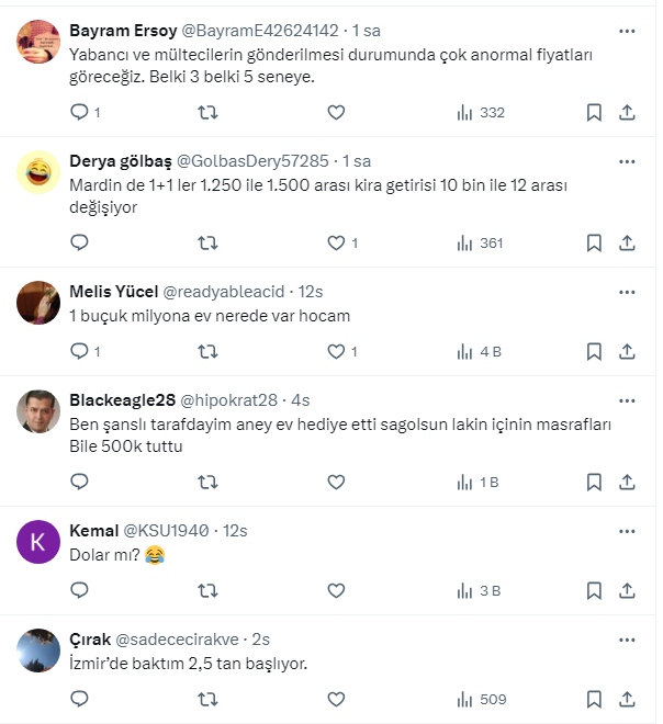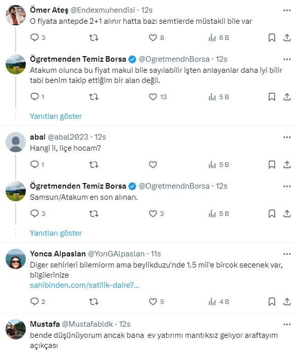 Az buçuk peşinatı olan tanıdıklarımın çoğu 1+1 ev aldı/alıyor. Altını satan o tarafa yöneldi. Duyduğum fiyatlar 1 buçuk milyon civarında genelde…