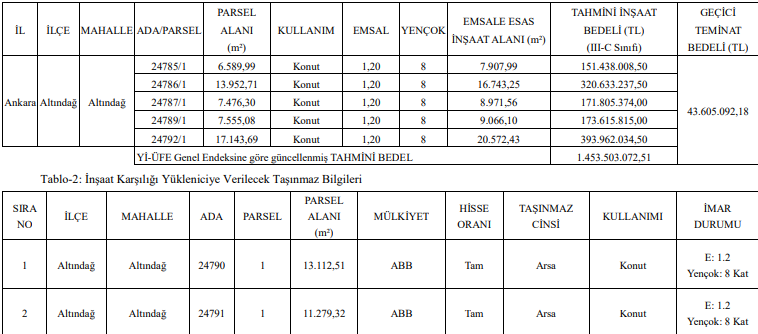 Resmi Gazete'de yayımlanan ilanda "Tablo-1’de Mülkiyeti Belediye Başkanlığımıza ait Ankara ili, Altındağ İlçesi, Altındağ Mahallesi, 24785/1, 24786/1, 24787/1, 24789/1 ve 24792/1 ada/parseller üzerine, Tablo-2’de yer alan taşınmazların devri karşılığında; Hıdırlıktepe-Atıfbey-İsmetpaşa Kentsel Dönüşüm ve Gelişim Projesi Alanındaki hak sahiplerine taahhüt edilen konutlara yönelik inşaat yapılması amacıyla, 2886 sayılı Kanunun 36. maddesi kapsamında kapalı teklif usulü ile Arsa/Kat Karşılığı İnşaat ihalesi yapılacaktır" denilerek Altındağ'da beklenen kentsel dönüşüm için yeni bir aşamaya geçilmiş oldu.