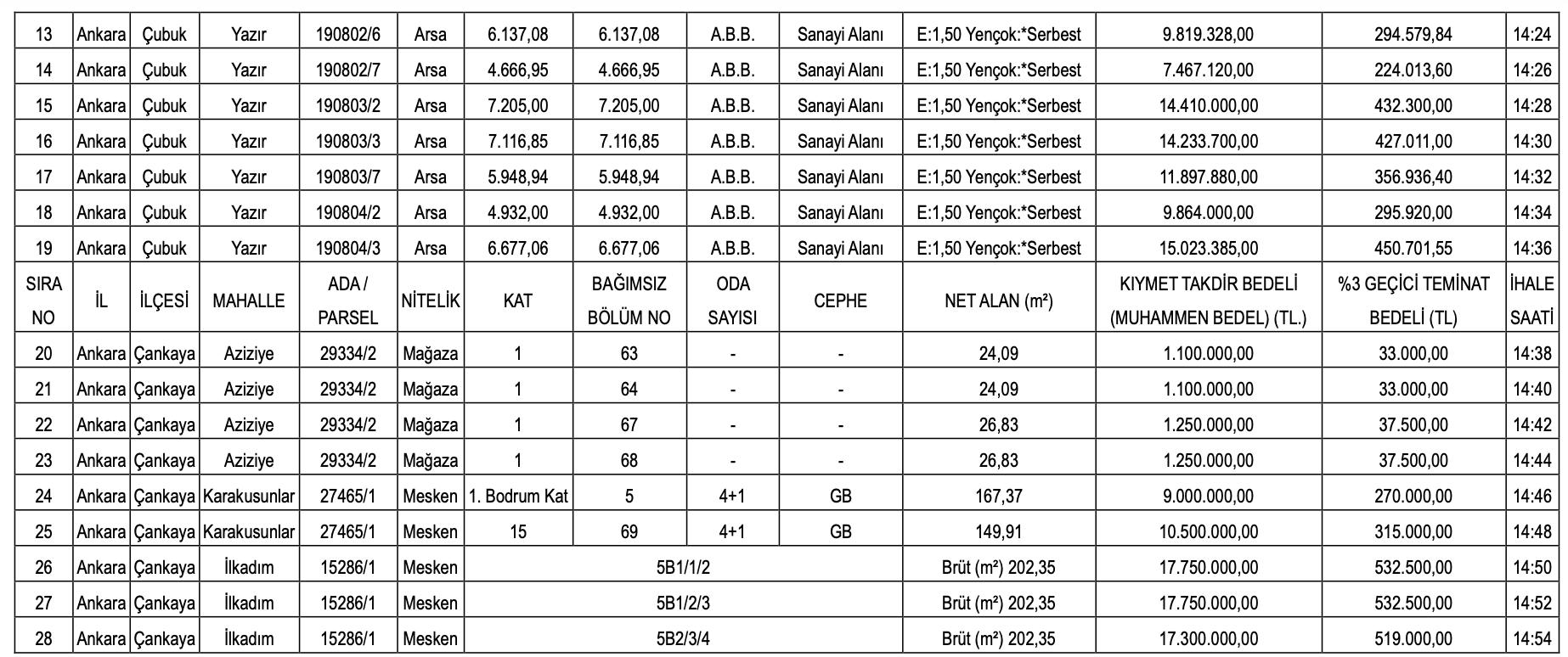 ANKARA BÜYÜKŞEHİR'DEN SATILIK 28 GAYRİMENKUL