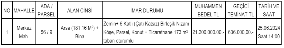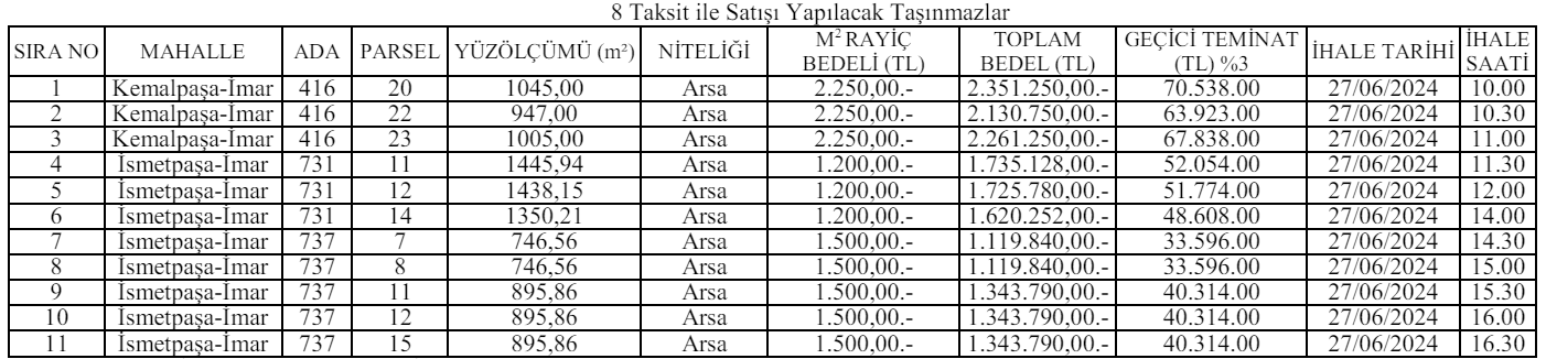 2- İhale 25.06.2024 Salı günü listede belirtilen saatte 14:00 ‘da Meclis Salonunda