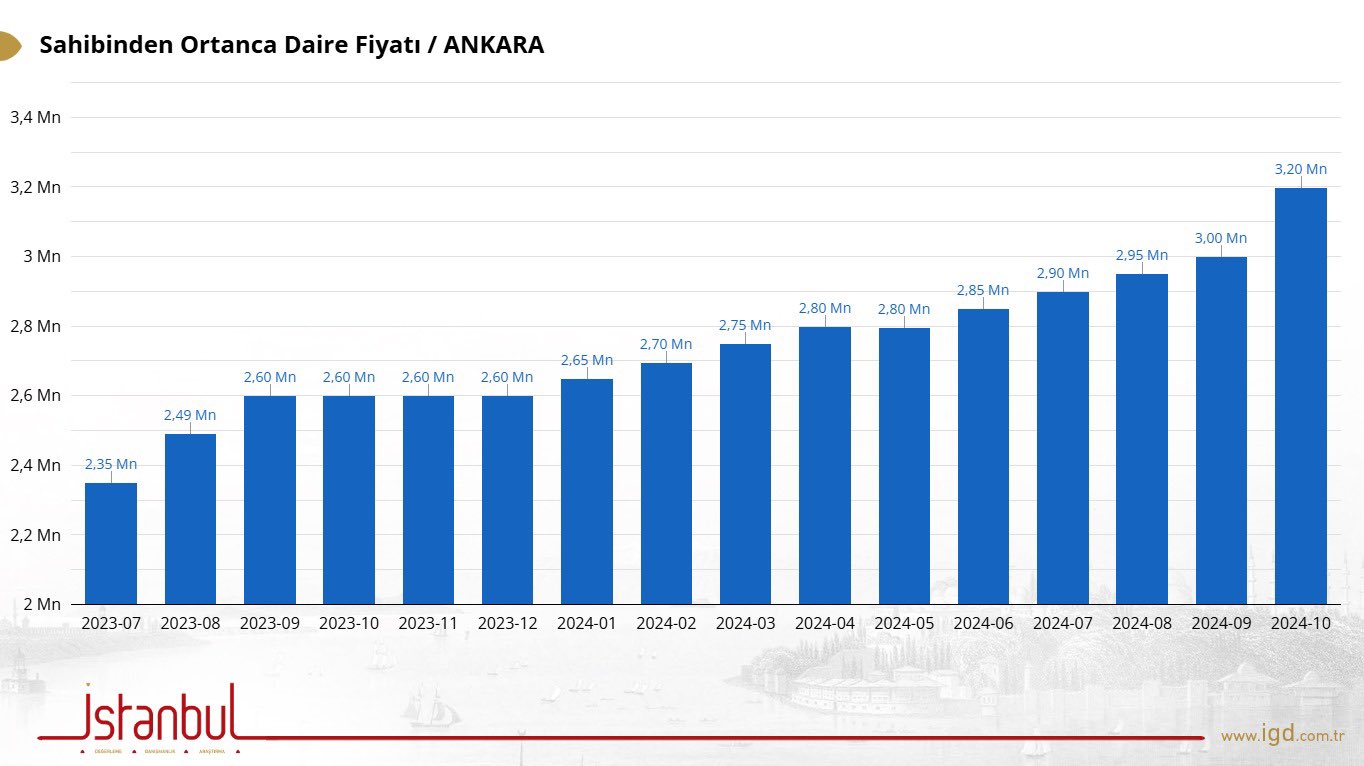 Ankara’da daire ilan fiyatları zıpladı! 3 milyon TL olan daire ilan fiyatı yüzde 6,7 artışla 3.2 milyon TL’ye çıktı!