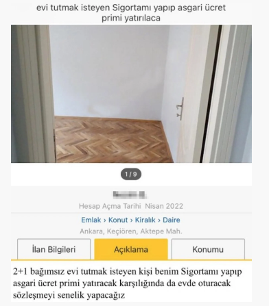 Ankara'da ilginç ev ilanı: '2+1 evimi tutmak isteyen sigortamı yapacak...!'