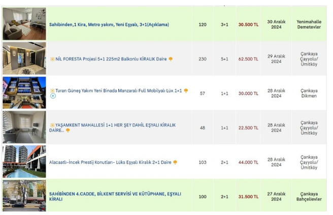 Ankara hem satılık hem de kiralık konut fiyatlarında en hızlı yükseliş yaşanan illerin başında yer alırken açıklanan 2025 asgari ücret zammı sonrasında ev sahipleri bir kere daha harekete geçti ve kiralık ev fiyatlarını güncelledi.