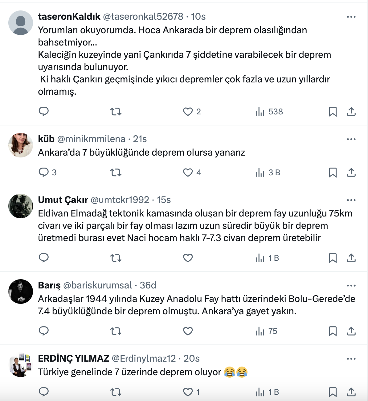 Deprem, başkent Ankara’da paniğe neden olurken, Yer Bilimci Prof. Dr. Naci Görür de sosyal medya hesabı üzerinden bir paylaşım yaptı.