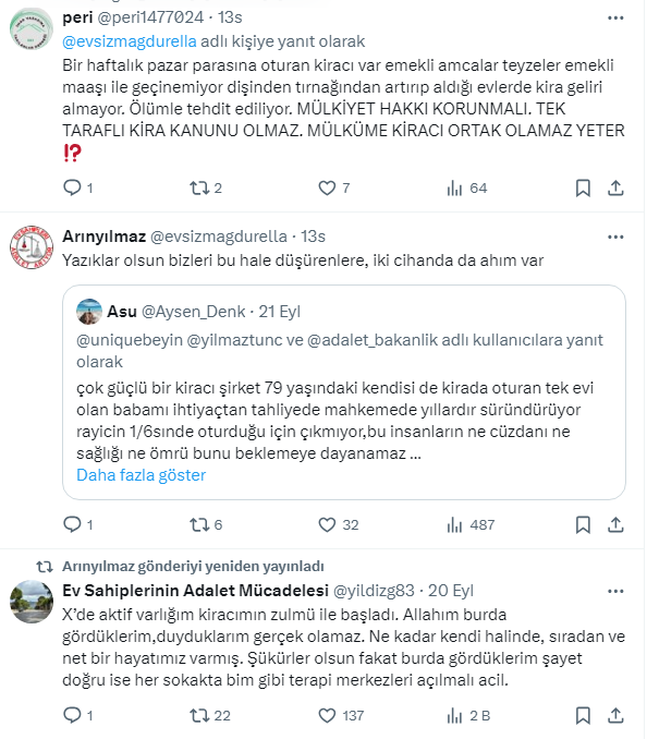 Mağdur ev sahibi Yılmaz, yetkililere seslenerek ev sahiplerine neden bu kadar haksızlık yapıldığını soruyor. İşte Arın Yılmaz'ın sosyal medya hesabı X'ten yaptığı o paylaşım ve gelen yorumlar...