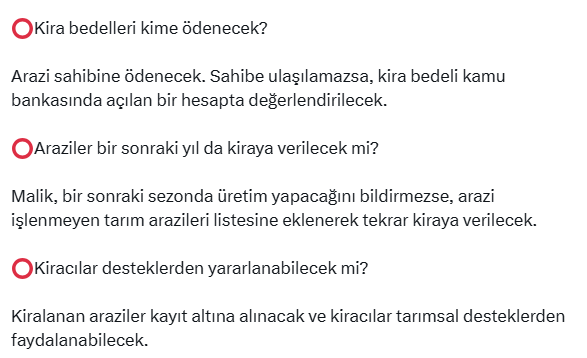 Malik, bir sonraki sezonda üretim yapacağını bildirmezse, arazi işlenmeyen tarım arazileri listesine eklenerek tekrar kiraya verilecek.