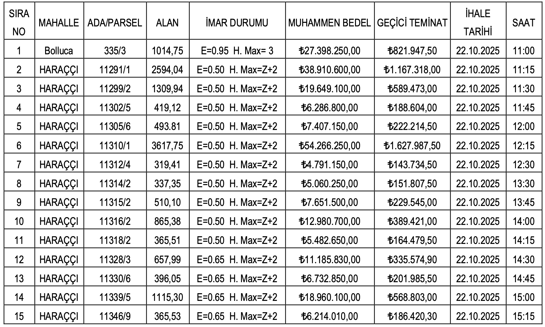 Gayrimenkullerin satış ihalesi 22 Ekim 2025 tarihinde saat 11.00 ile 15.15 arasında Arnavutköy Belediyesi Hizmet Binasındaki Encümen Toplantı Salonunda Belediye Encümenince yapılacak.