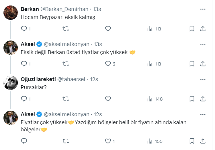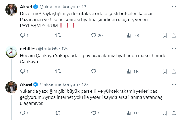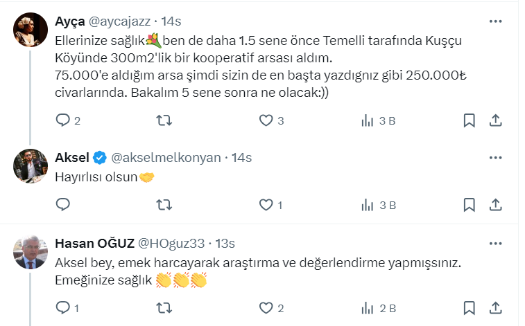 Toprak Yatırımcısı ve Danışmanı Aksel Melkonyan'ın paylaşımına şu yorumlar geldi: