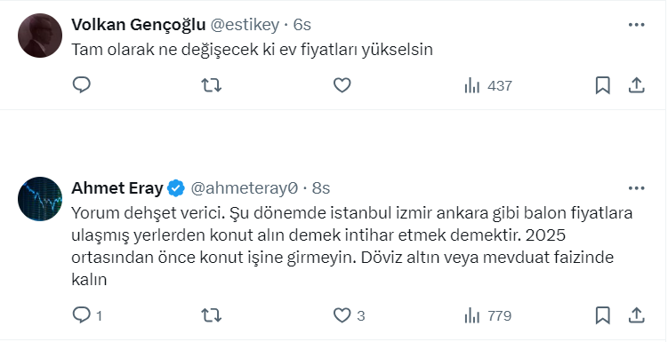 Gayrimenkul Uzmanı Murat Gültekin'in paylaşımına gelen yorumlar şu şekilde: