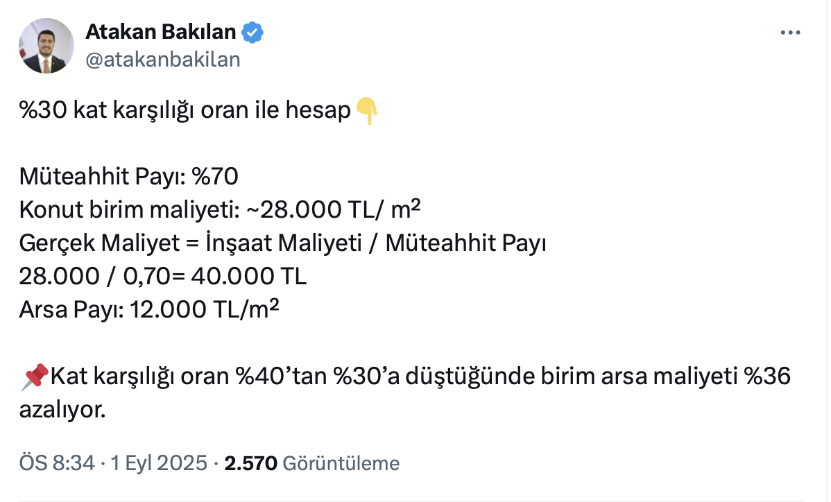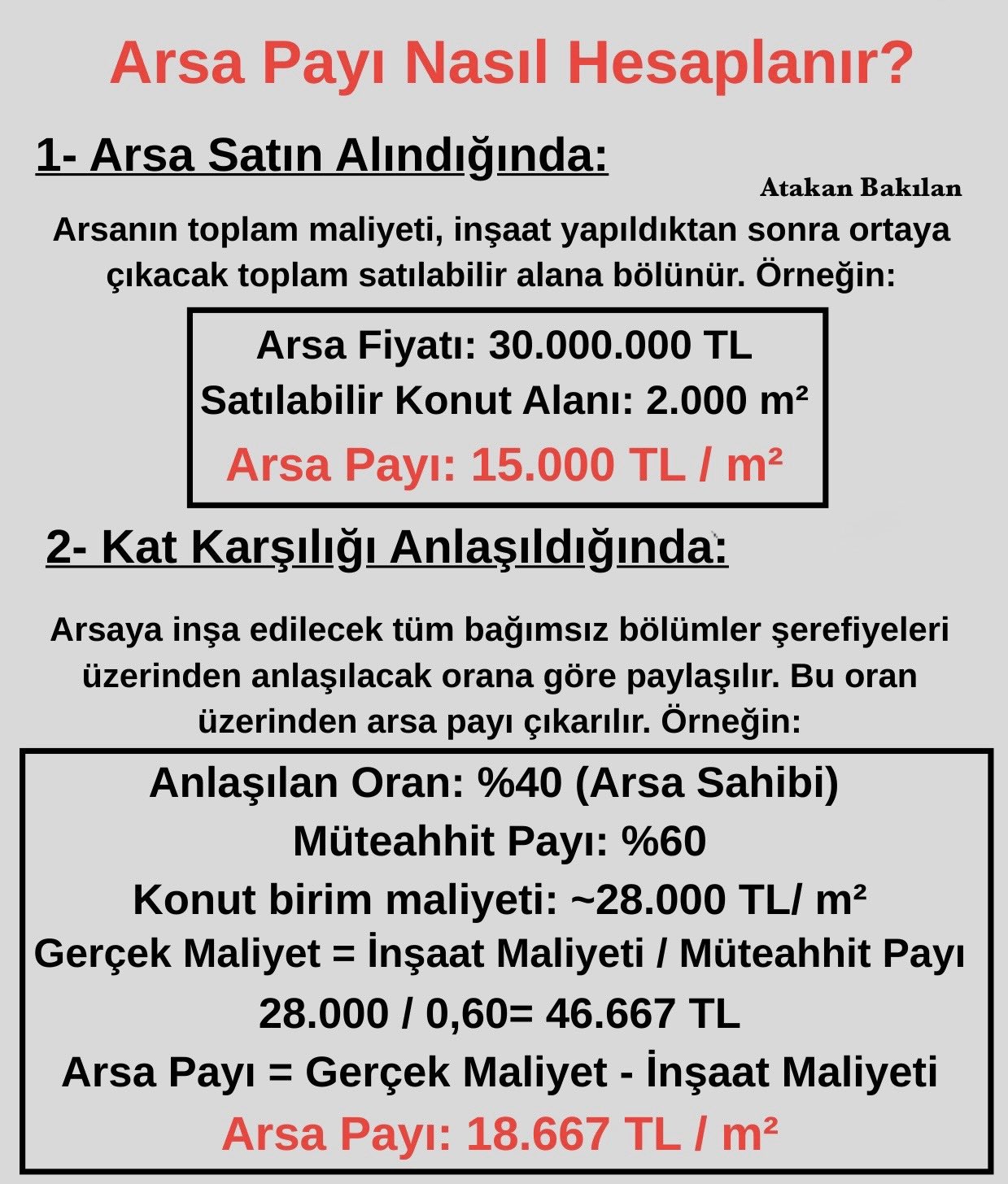 Atakan Bakılan, yaptığı paylaşımda arsa payının nasıl hesaplanacağını açıkladı.