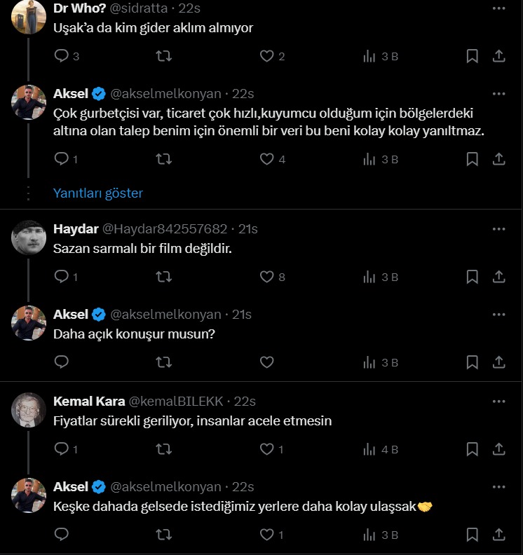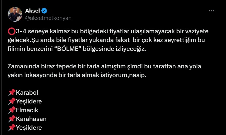 Toprak Yatırımcısı ve Danışmanı Aksel Melkonyan, https://x.com/akselmelkonyan X sosyal medya hesabından Uşak ve çevresindeki yatırım fırsatlarını açıkladı.