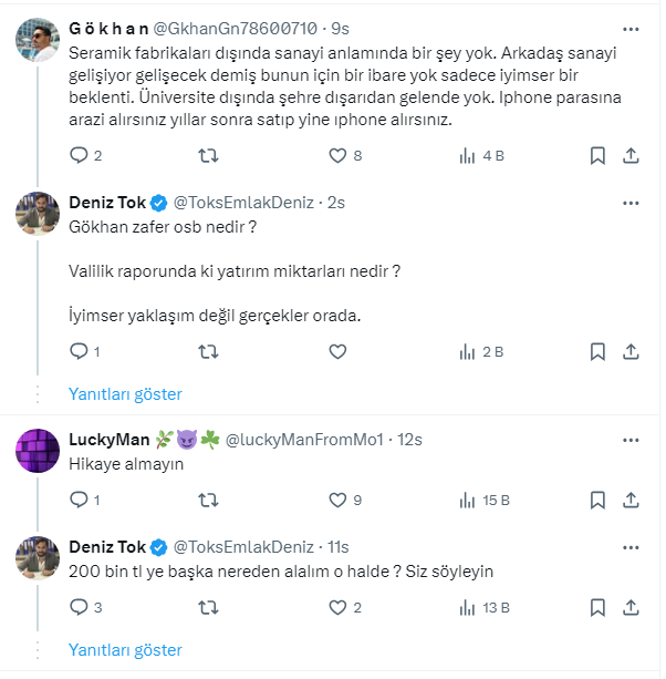 Son zamanlarda arsa en gözde yatırım araçları arasında geliyor. Konut alamayanlar arsa almaya başladı. Bu kapsamda bütçesine uygun arsa arayanlar en uygun fiyatla karlı çıkacakları bölge ve lokasyonları araştırmaya başladı. Girişimci, Tok’s Emlak ve D.T İnşaat Kurucusu Deniz Tok, sosyal medya hesabından, arsa almak isteyenlere seslenerek, iPhone fiyatına arsa sahibi olabilecekleri lokasyonu açıkladı.