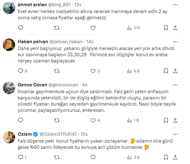 “Asgari ücretteki zam, gayrimenkul için de net mesaj içeriyor. Enflasyonla mücadele tam gaz devam. Faiz düşecek, gayrimenkul uçacak diye son zamanlarda, taşınmaza saldıranlar, bunların bıçak gibi kesildiğini görecekler. Yok olmaz diyenler, 2 ay sonraki verilere baksınlar…”