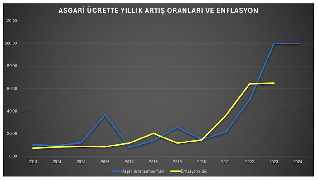 Yıllık bazda artışlara bakıldığı zaman da 2022 ve 2023 senelerindeki artış oranları enflasyonu geçiyor.