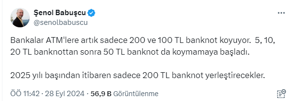 Bu durum piyasada bozuk paraya erişimin zorlaşmasına neden olurken, sosyal medya hesabı X'ten paylaşım yapan Ziraat Bankası eski Genel Müdür Yardımcısı ve Başkent Üniversitesi öğretim üyesi Prof. Dr. Şenol Babuşcu, ATM'lerde yeni dönemin 2025 yılında başlayacağını açıkladı. İşte Şenol Babuşçu'nun sosyal medya hesabı X'ten yaptığı o paylaşım ve gelen yorumlar...