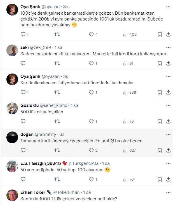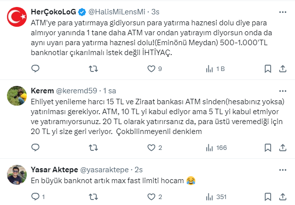 Bankalar ATM'lere artık sadece 200 ve 100 TL banknot koyuyor. 5, 10, 20 TL banknottan sonra 50 TL banknot da koymamaya başladı.