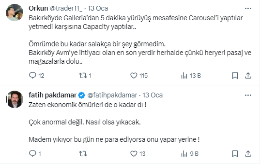 Bakırköy’de Galleria’dan 5 dakika yürüyüş mesafesine Carousel’i yaptılar, yetmedi karşısına Capacity yaptılar. Ömrümde bu kadar salakça bir şey görmedim. Bakırköy, AVM’ye ihtiyacı olan en son yerdir herhalde çünkü her yeri pasaj ve mağazalarla dolu.