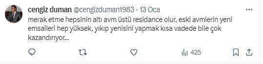 Türkiye’deki konut sorunu acil çözüm beklerken, Emlak ve Yatırım Danışmanı Mert Başaran X sosyal medya hesabından yaptığı paylaşımda konuya farklı bir bakış açısıyla yaklaştı getirdi. İşte ülkenin AVM çöplüğüne döndüğünü söyleyen Başaran’ın önerisi ve vatandaşın yorumları..