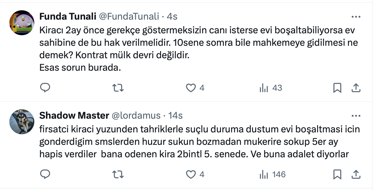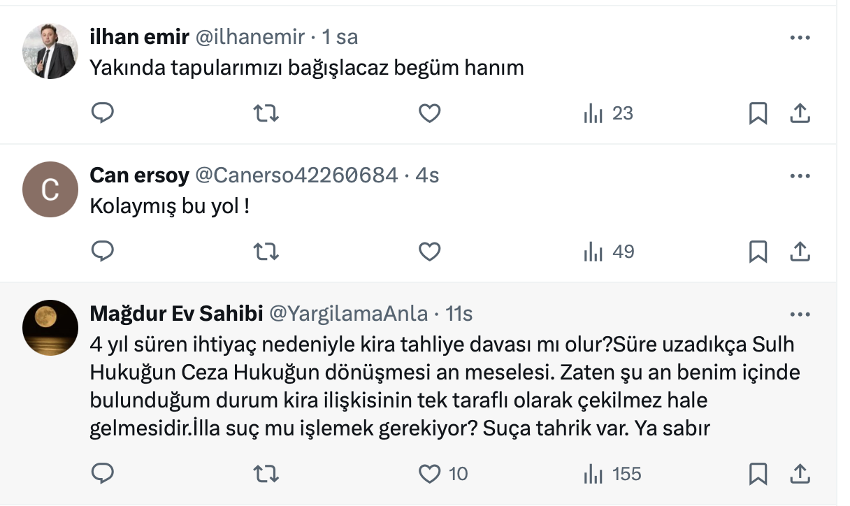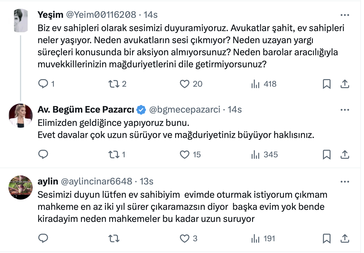 Avukat Begüm Ece Pazarcı'nın paylaşımına ev sahiplerinden yorumlar geldi. İşte o yorumlar: