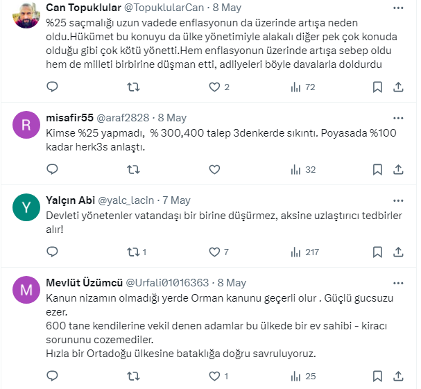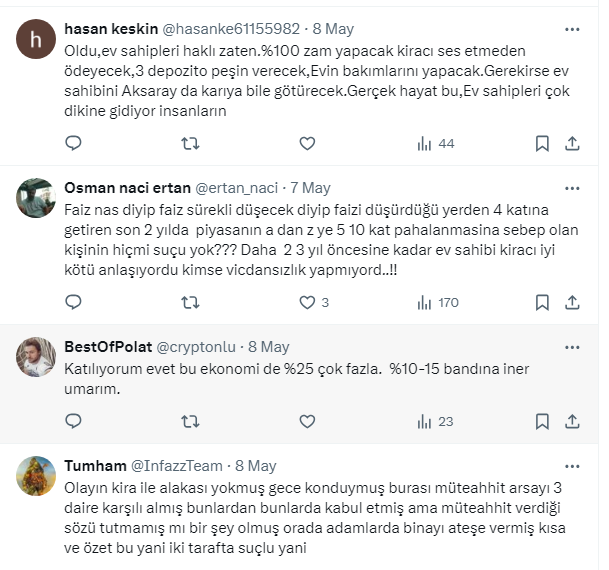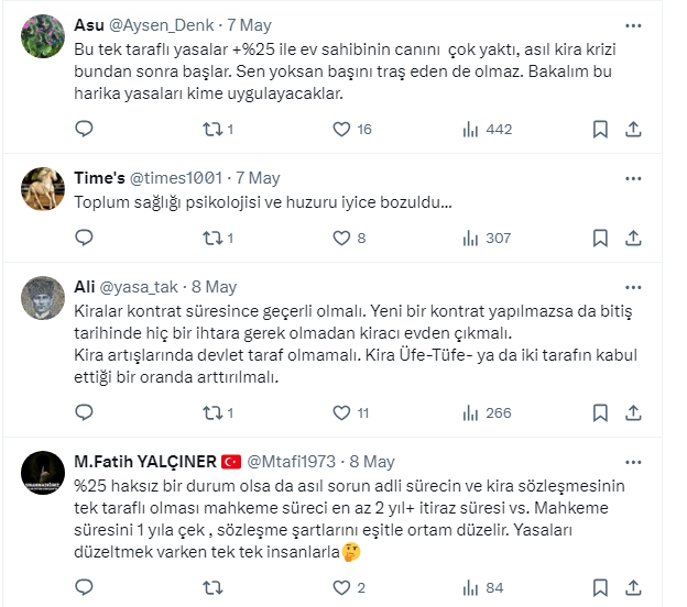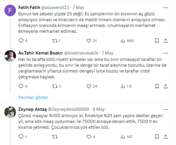 Konut krizinden çok yargının kötü işleyişinin kötüye kullanılmasına döndü iş. Bizzat takip ettiğim birçok davada, davalı kiracı 25 artış yaparken, kendi evini yüksek miktarda kiraya vermiş durumda. Bu kötüye kullanımların da göz önüne alınması gerekmiyor mu sizce?