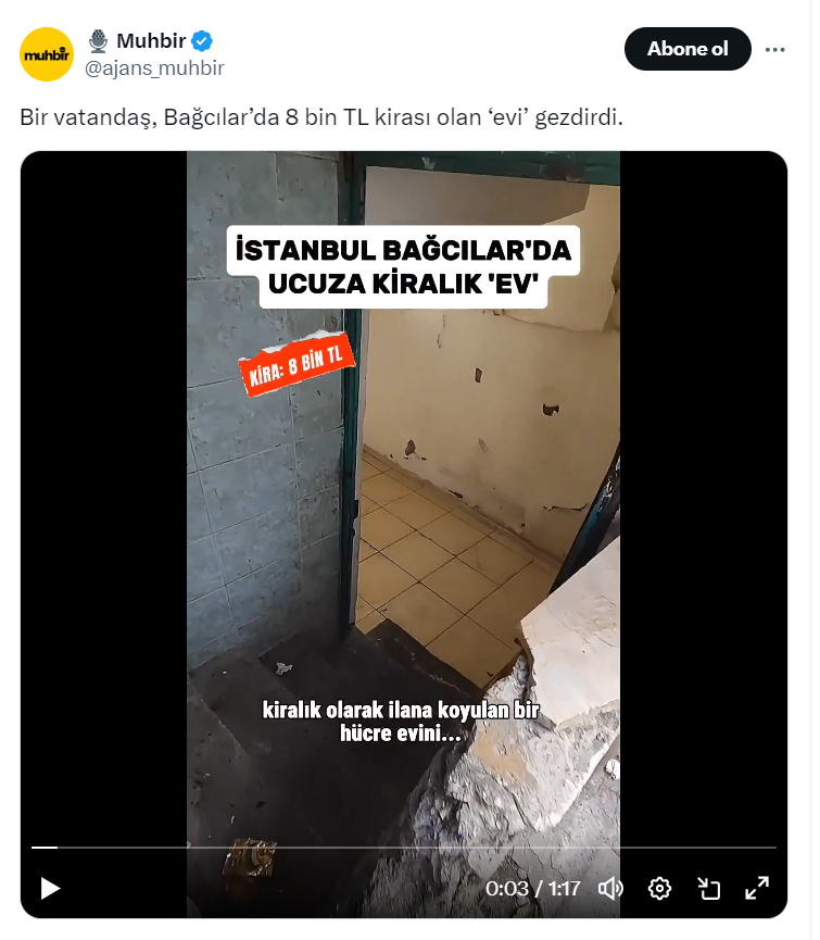 İstanbul Bağcılar'da yer alan bir ev de 8 bin TL kira bedeliyle tartışmalara neden oldu. Sosyal medyada dolaşan bir kullanıcı, Bağcılar'da yer aldığını öne sürdüğü harabe evin içini görüntüledi.