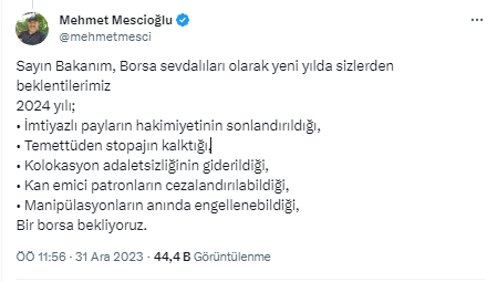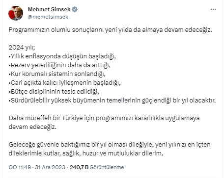 Hazine ve Maliye Bakanı Mehmet Şimşek, 2024 yılına ilişkin mesajlar verdi.