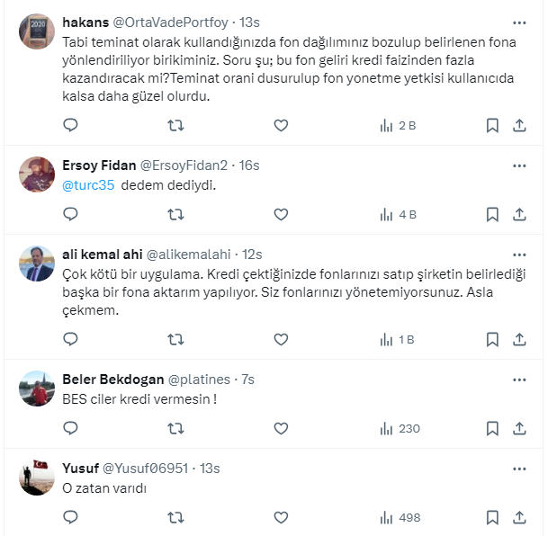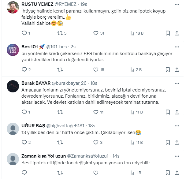 BES’i olanlar birikimlerini bozmadan kredi daha düşük faiz oranlarıyla kredi çekebilecek. Geri ödeme süresi de daha uzun olacak. Kredinin geri ödenmemesi halinde, BES birikimi risk altına girecek.