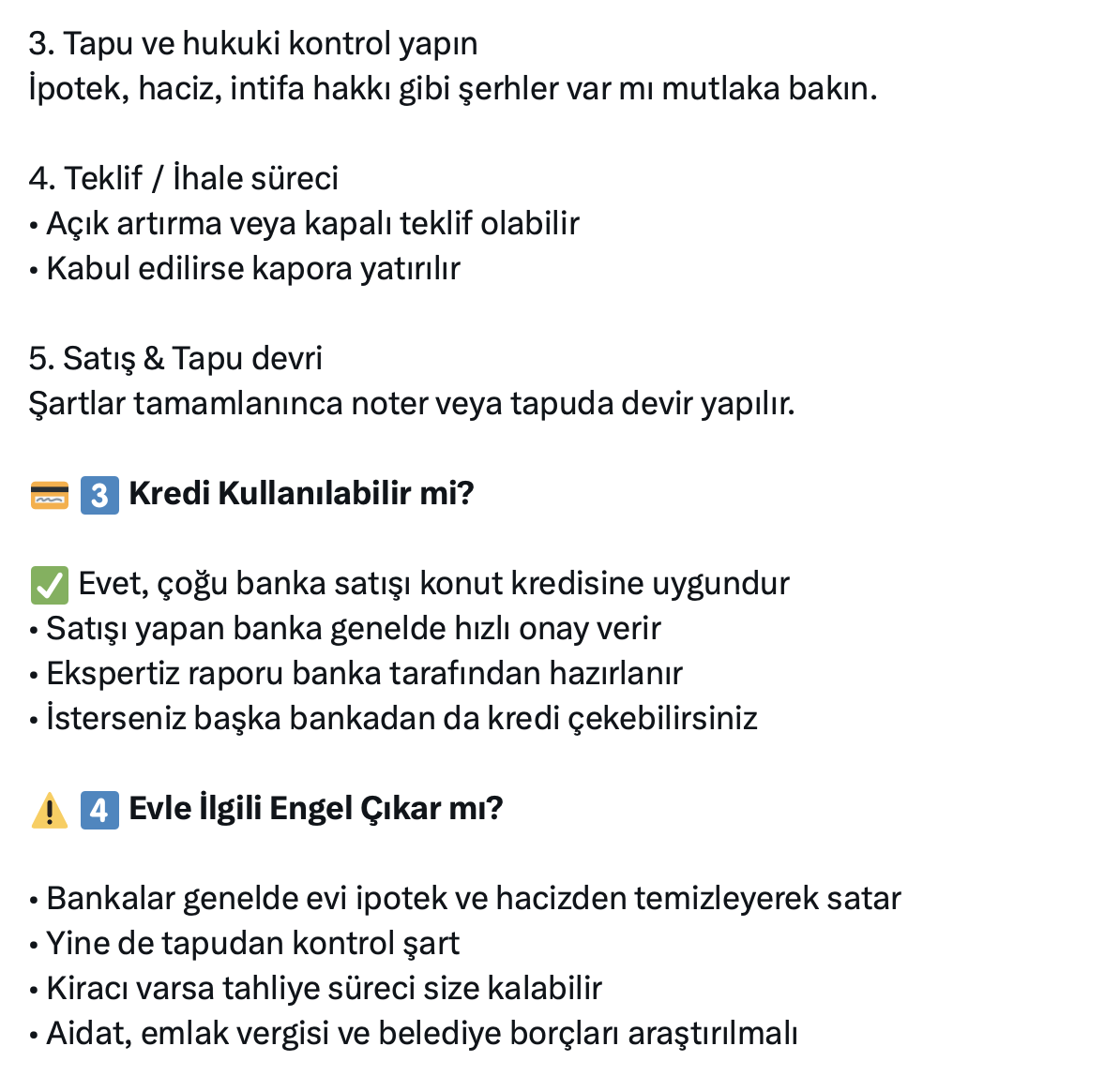 • Bankalar genelde evi ipotek ve hacizden temizleyerek satar