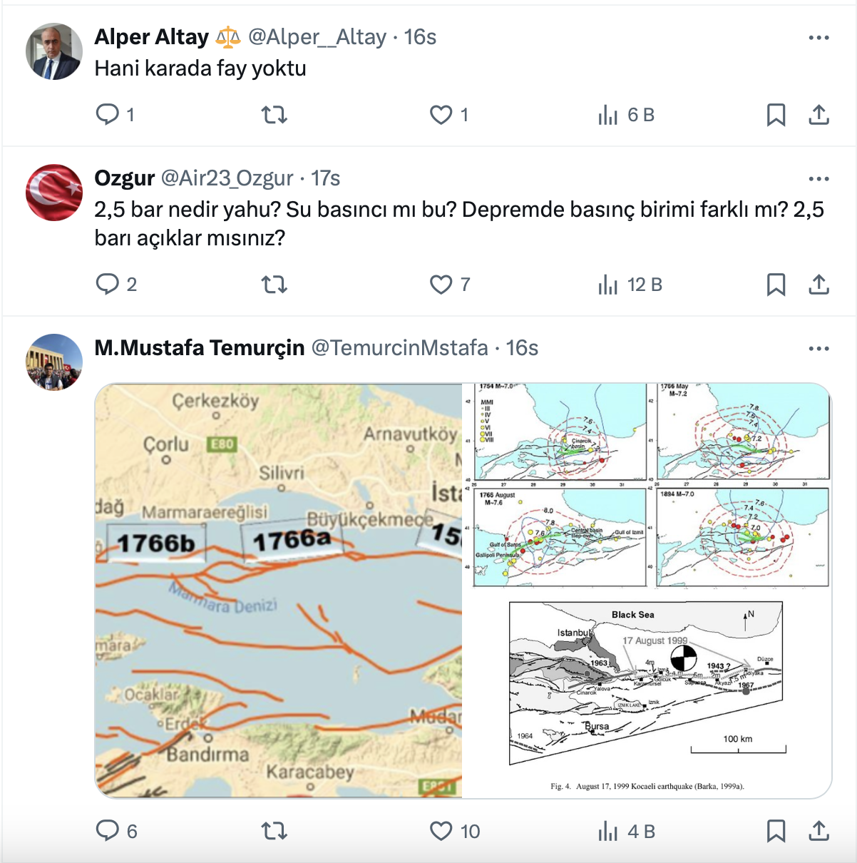 Deprem araştırmacısı Baturhan Öğüt’ün paylaşımına gelen yorumlar şu şekilde: