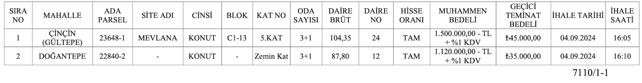 3 oda 1 salon konutların muhammen bedelleri 1 milyon 500 bin TL ve 1 milyon 120 bin TL olarak açıklanırken, geçici teminat bedelleri ise 45 bin TL ve 35 bin TL olarak açıklandı.