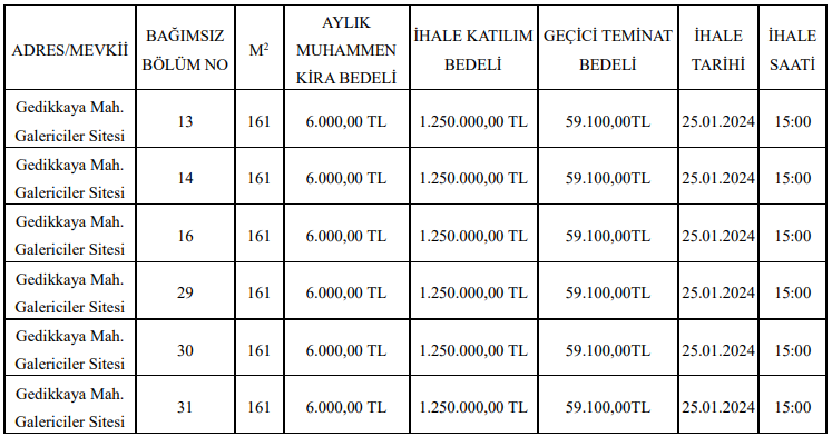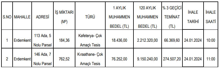 Söz konusu kiralama ihalesi 25 Ocak 2024 tarihinde yapılacak.