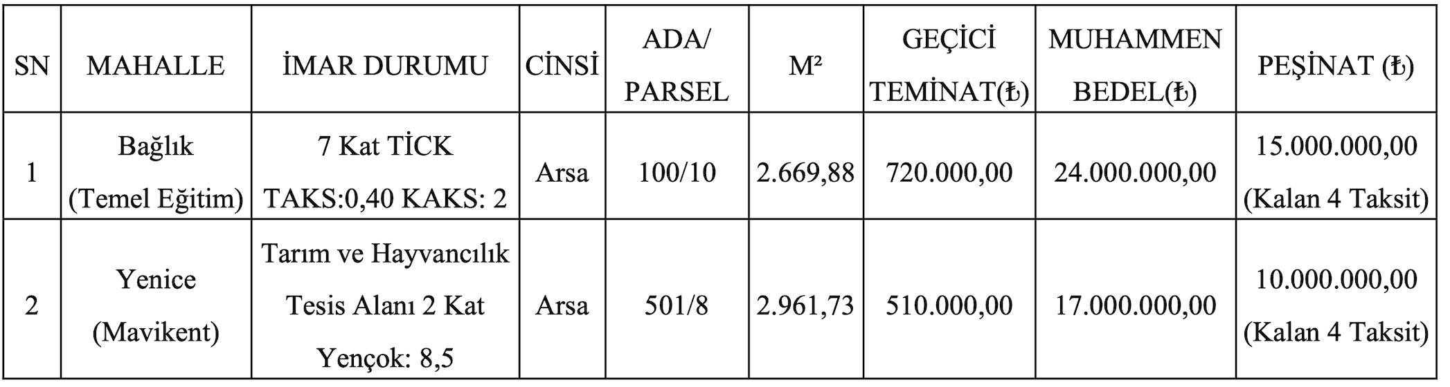 Satışa çıkarılan arsaların muhammen bedelleri 17 milyon TL ve 24 milyon TL olarak açıklanırken, geçici teminat bedelleri de 720 bin TL ve 510 bin TL olarak açıklandı.