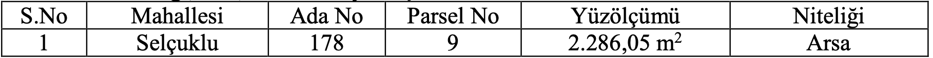 2.3. İşin Yapılacağı Yer : Selçuklu Mahallesi 178 ada 9 parsel