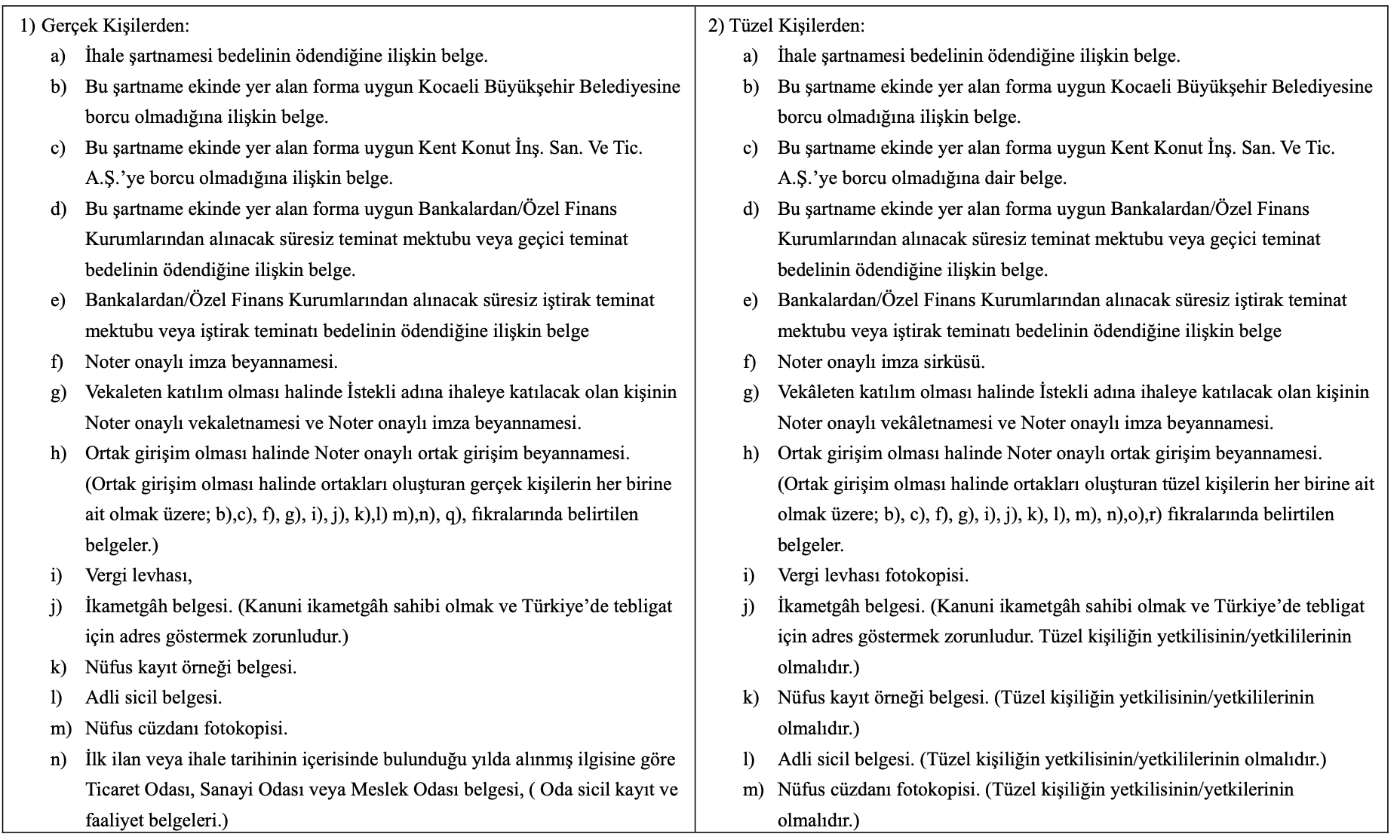 ı) İstekli ihaleye girerken T.C. Kimlik Kartı aslını göstermek zorundadır.